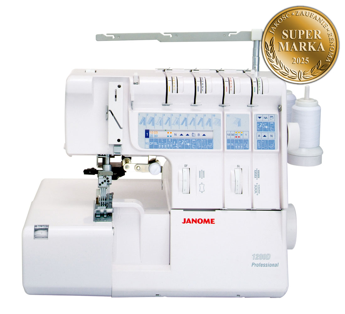 Maszyna Janome 1200D to 2-, 3-, 4- lub 5- nitkowy owerlok, z możliwością szycia ściegami drabinkowymi, który pozwoli Ci na profesjonalne wykończenie wyrobów.