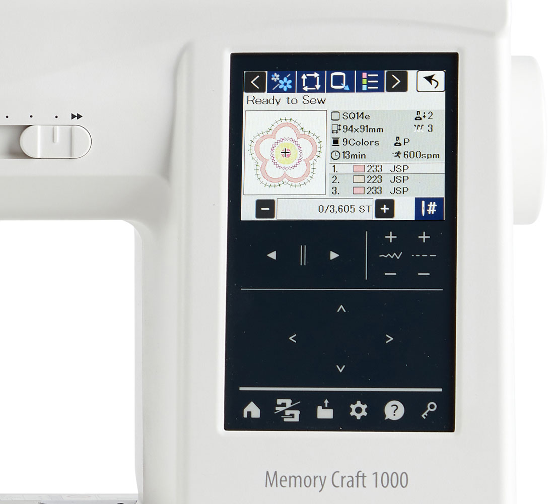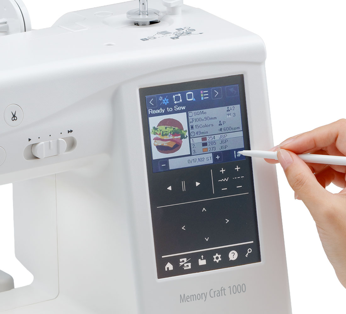 Wbudowany wbudowany nawlekacz igły, automatyczne ryglowania i obcinanie nici, pozycjonowania igły, pamięć ustawień użytkownika oraz czytelny, kolorowy ekran dotykowy LCD sprawiają, że obsługa Janome MC1000E jest szybka, prosta i przyjemna - od pierwszego uruchomienia po ostatni szew.