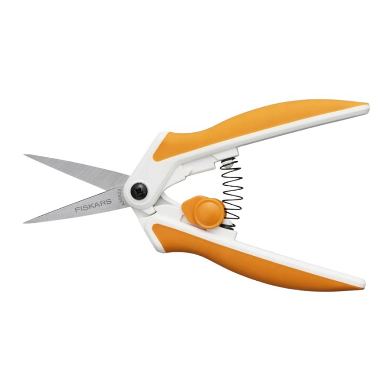 Wygodne w użyciu nożyczki idealne do precyzyjnych cięć na delikatnych materiałach, jak jedwab, delikatna skóra, poliester, bawełna, filc i inne). Posiadają innowacyjnym system Easy Action™ opartym na mechanizmie sprężynowym, który otwiera ostrza nożyc po każdym cięciu. Mechanizm ten zapewnia duży komfort cięcia, dłonie nie męczą się jak przy standardowych rozwiązaniach. Ostrza Micro-Tip® oraz czubek w nożyczkach Fiskars Easy Action Micro-Tip są bardzo ostre i gwarantują niesamowitą precyzję cięcia, nawet w trudno dostępnych miejscach. Mimo, że nożyczki Fiskars Easy Action Micro-Tip nie mają klasycznej rękojeści bardzo dobrze leżą w dłoni, a to za sprawą miękkiej wstawki SoftGrip®, która zapewnia pewny chwyt i zwiększa komfort pracy.