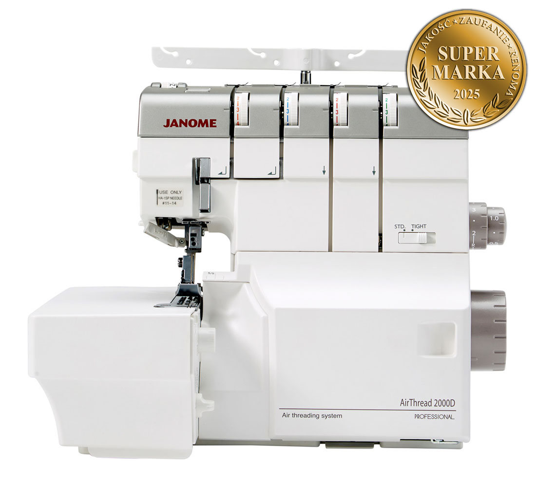 Janome Air Thread 2000D Professional to niezwykle nowoczesny 2-, 3-, 4- nitkowy owerlok, który zachwyci Cię prostotą obsługi, wytrzymałością i wysoką jakością ściegów.