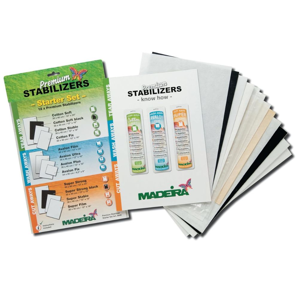 Zestaw startowy Madeira to praktyczne rozwiązanie dla każdej osoby zajmującej się haftem maszynowym lub szyciem dekoracyjnym. W jednym kompaktowym opakowaniu znajdziesz próbki 12 profesjonalnych stabilizatorów Madeira, dzięki czemu możesz przetestować różne rodzaje flizelin: wydzierane, wycinane oraz rozpuszczalne w wodzie. To idealny sposób, aby szybko sprawdzić, które stabilizatory najlepiej współpracują z konkretnymi tkaninami i typami projektów.
